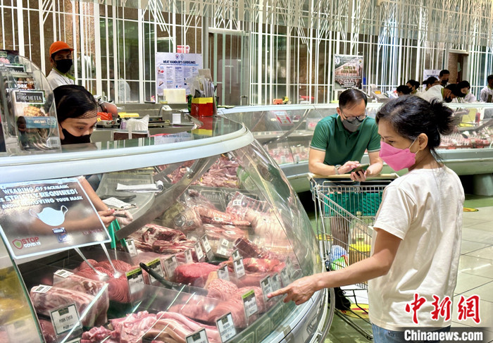 圖為菲律賓大馬尼拉地區馬卡蒂市,市民在超市選購豬肉。 中新社記者 張興龍 攝