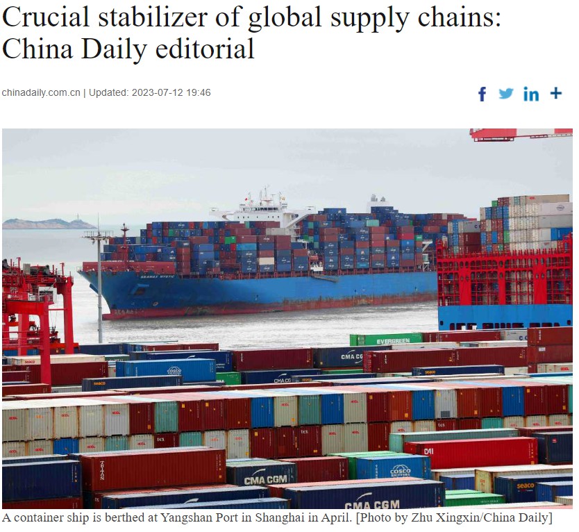 盡管備受非議,但中國始終頂住壓力,致力于維護全球供應鏈安全穩定,尤其是在俄烏沖突、全球通脹、大宗商品持續高位的背景之下。多年來,中國一直是全球供應鏈的“穩定器”,積極與其他國家開展貿易,并利用其制造大國的優勢,向全球制造商提供了大量原材料和零部件。