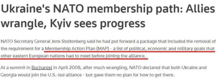 通過此舉,北約這次不只是像2008年布加勒斯特峰會時那樣,僅僅發表一份承諾將最終接納烏克蘭的聲明,而是同時給出了烏克蘭如何加入的捷徑。