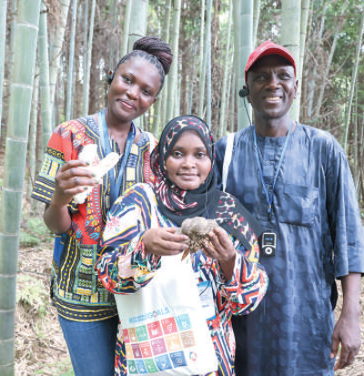 6月18日,聯合國學習團在福建省南平市順昌縣參觀林下菌草栽培竹蓀。