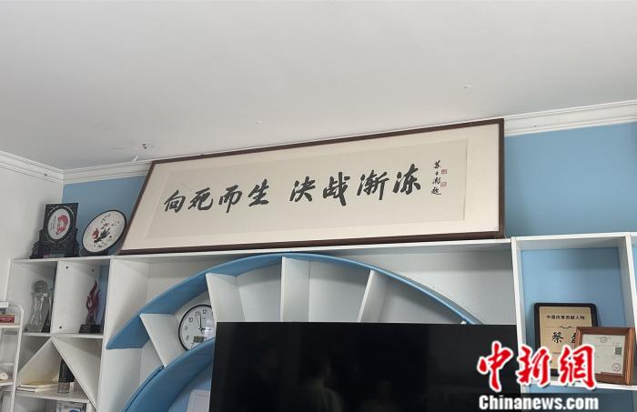 蔡磊的辦公室內有一塊“向死而生 決戰漸凍”的牌匾 記者 吳家駒 攝