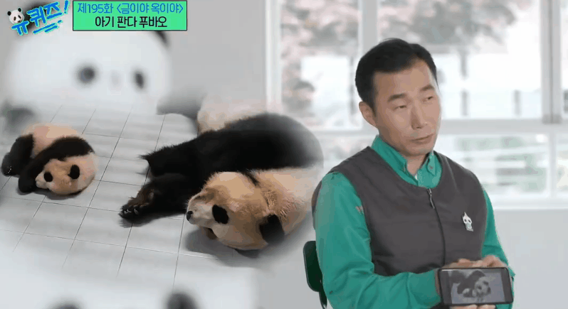在韓國綜藝節目中,飼養員姜爺爺展示“福寶”照片。(來源:韓國tvN電視臺)