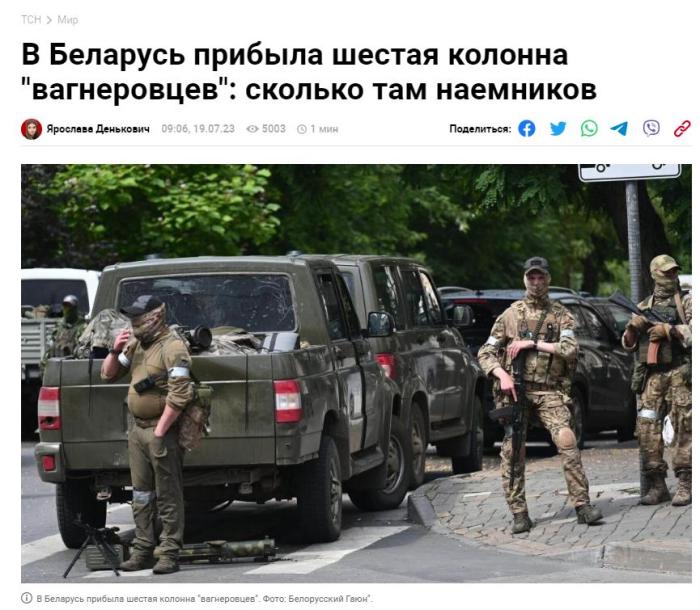 中新網7月20日電 據烏克蘭TSN電視臺援引社交媒體消息報道,當地時間19日晚,第6支瓦格納隊伍進入白俄羅斯領土。