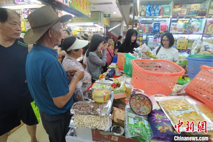 近日,東興國門景區(qū)里的東南亞特產(chǎn)商鋪受游客青睞。 中新社記者 翟李強 攝