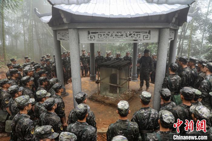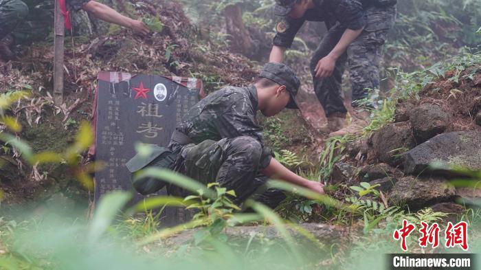 官兵徒步行軍至武夷山市洋莊鄉小漿村張山頭無名紅軍烈士墓群,開展“追尋紅色印記、賡續紅色血脈”參觀見學活動。中新社記者 張麗君 攝