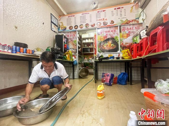 “店內的淤泥很多,都有十幾厘米高,早上7點左右一直整理到現在(18時),全部整理完還要再進行全面消毒。”馮先生說。