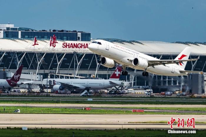 7月16日,東航第二架國產C919大型客機從浦東機場起飛。