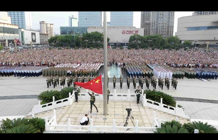 八月一號上午,全軍院校“強(qiáng)軍杯”系列比賽集中交流賽560余名官兵與南昌市相關(guān)代表集合在南昌八一廣場參加升旗儀式。 劉宇龍 攝