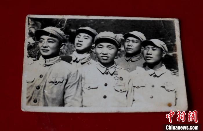 王益民(右一)和戰友們的合影。 尹才霞 攝