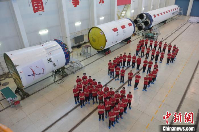 長征四號丙運載火箭研制歷程,研制團隊站成數字100的隊形。(中國航天科技集團有限公司八院供圖)