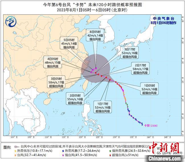 今年第6號臺風“卡努”路徑預測圖。浙江氣象 供圖
