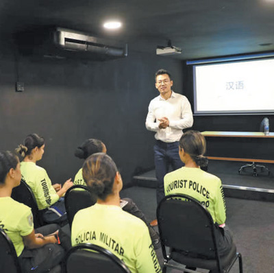 為更好地保障中國游客安全,里約旅游警察局和中國駐里約總領事館合作推出的里約旅游警察中文培訓班日前正式開班。該培訓班分為10個課時,由里約天主教大學孔子學院的教師授課。當地警員丹妮爾·克雷斯說,中國游客將為推動里約經濟發展發揮重要作用,“我愿與同事一起為保障游客安全、促進巴中人民友好往來貢獻力量。”