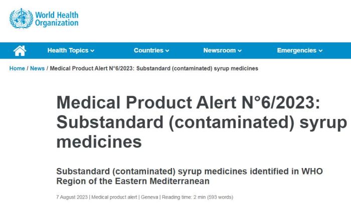 自2022年10月至今,世衛組織曾多次就其他受污染液體劑量藥品發布警報。