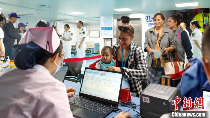 那天,6歲的基里巴斯小男孩林杰克·拉扎茲(Linjkj Raazazi),成為和平方舟執行“和諧使命-2023”任務以來的首位外籍兒科患者。經過檢查,拉扎茲被確診為上呼吸道感染引起的咽炎,醫生為他開具了處方并詳細地給予了醫囑。