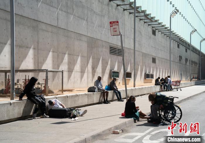 當地時間8月19日,無家可歸者聚集在美國舊金山聯邦大廈附近。中新社記者 劉關關 攝