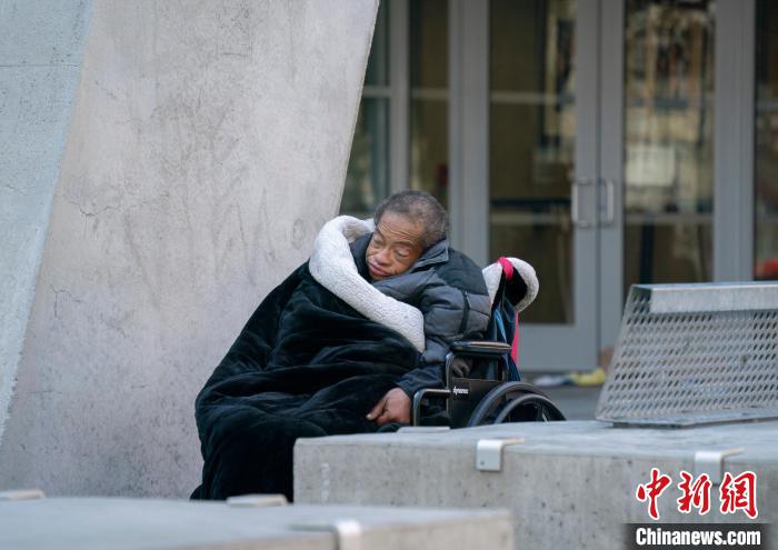 當地時間8月19日,一名無家可歸者在美國舊金山聯邦大樓附近逗留。中新社記者 劉關關 攝