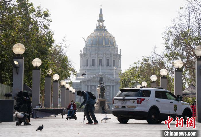 當地時間8月19日,無家可歸者從美國舊金山市政廳附近經過。中新社記者 劉關關 攝