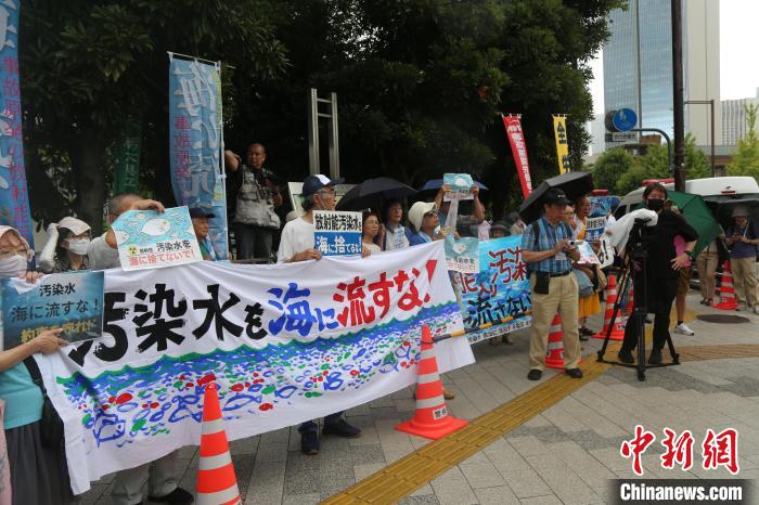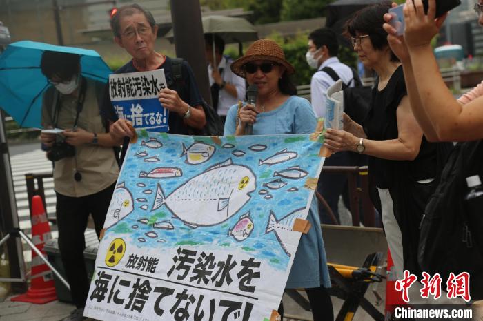 當?shù)貢r間22日上午,日本政府宣布,將于8月24日啟動福島核污染水排海。反對核污染水排海的民眾當日冒雨聚集在首相官邸前,舉起寫有“勿將核污染水排放入海”的橫幅或標語牌,高呼“勿將代價留給未來”“不要污染大海”“聽聽漁民的聲音”等口號,抗議日本政府啟動核污染水排海的決定。