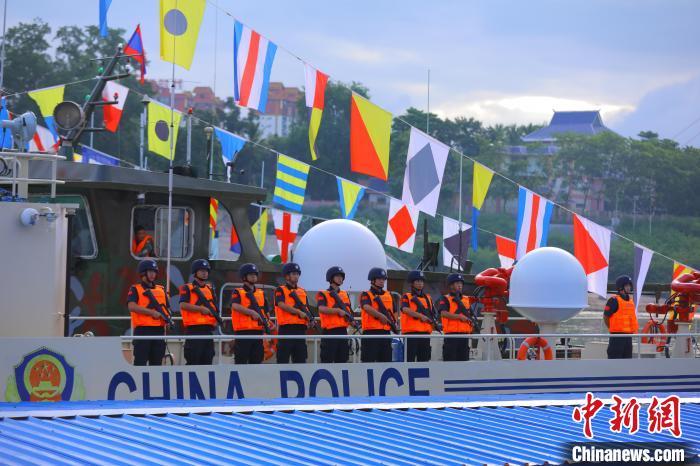 8月22日9時,第132次中老緬泰湄公河聯合巡邏執法行動正式啟動。圖為聯合巡邏執法編隊從中國西雙版納景哈警務碼頭啟航。 (云南省公安廳 供圖)