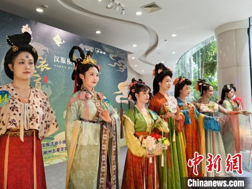 禮衣華夏漢服模特大賽廣西總決賽于8月20日在廣西柳州舉行。伴隨著古典優雅的音樂,一眾參賽選手身著華麗的漢服走上“T臺”,她們揮起長袖翩翩起舞,向臺下觀眾展現精致的古代妝造和儀態。
