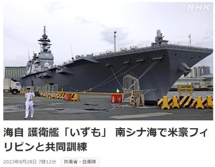 中新網(wǎng)8月28日電 綜合日媒報道,27日,日本海上自衛(wèi)隊公開了準航母“出云”號停靠菲律賓首都馬尼拉的畫面,并稱該艦在24日曾與美國、澳大利亞和菲律賓三國軍艦進行了聯(lián)合演習。