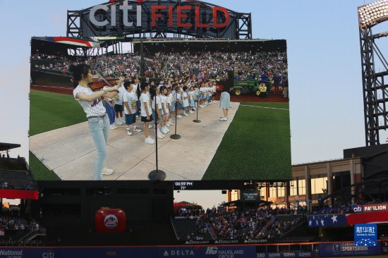 9月1日,在美國紐約大都會棒球隊主場花旗球場,兒童合唱團在“中華之夜”暨“你好!中國”旅游推廣品牌發(fā)布活動結(jié)束后表演。