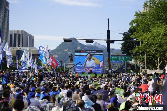 9月2日下午,韓國在野黨與市民團體在首爾市中心再次舉行大規模集會,強烈要求日本政府停止福島核污染水排海行為。圖為集會現場?!≈行律缬浾?劉旭 攝