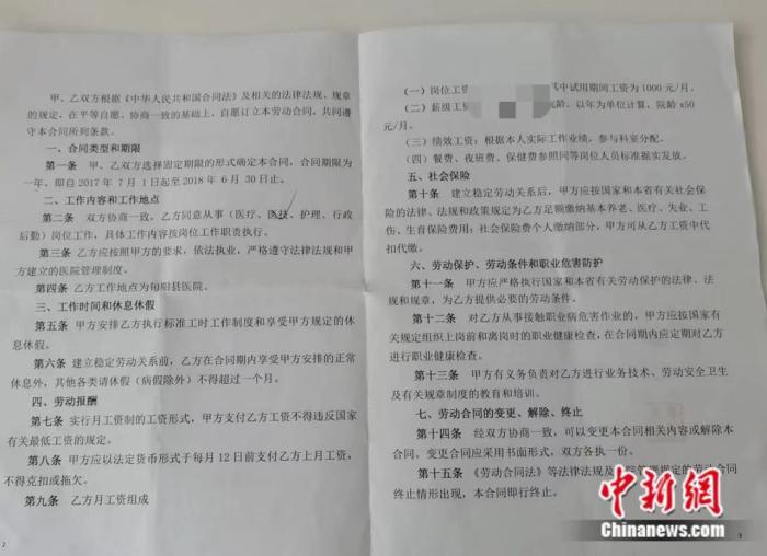 2017年,李月與醫院簽訂的勞動合同,期限為一年。 受訪者供圖