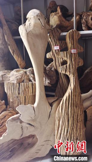 “我們這里朽樹樁、樹根比較多,有充足的原材料可供選擇。”戴新回憶,那時(shí)候,到戈壁深處撿拾柴火,奇形怪狀的“廢物”在他看來都是天然的藝術(shù)品。記者與戴新閑聊時(shí)獲悉,其實(shí)尋找原材料是一件苦差事,為了找到自己滿意的樹根,戴新帶上干糧和水,在沙漠邊找尋往往是一整天。即便這樣,也不是每次都能有收獲。