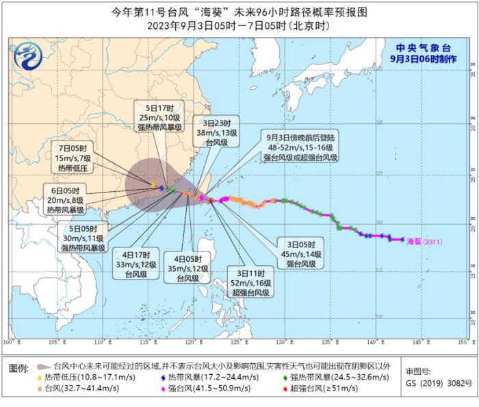 今年第11號臺風“??蔽磥?6小時路徑概率預報圖