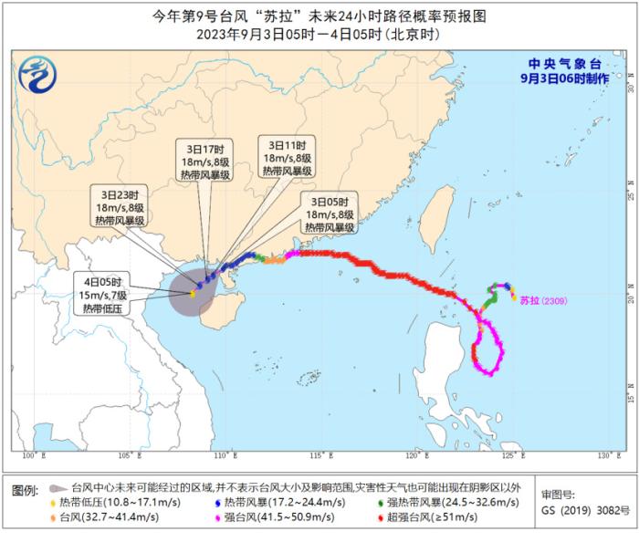 今年第9號臺風“蘇拉”未來24小時路徑概率預報圖