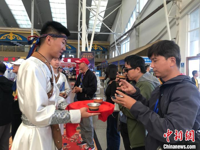 9月2日,臺灣少數民族參訪團在輝騰錫勒草原黃花溝景區體驗蒙古族迎賓禮儀。 中新社記者 陳建新 攝