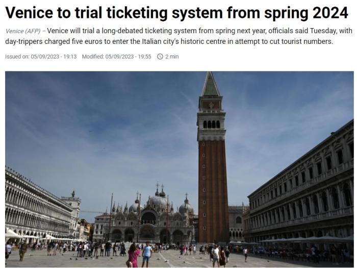 聲明還稱,這項措施的目的是“控制某些時段的一日游人數,以配合這座城市的脆弱性和獨特性”。