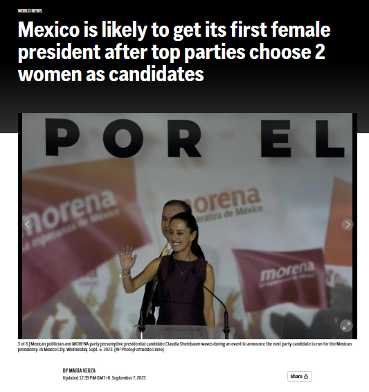 這意味著首次有兩名女性有望在2024年墨西哥總統大選中占據主導地位。輿論預期,這很可能成為“一場女性之間的對決”。