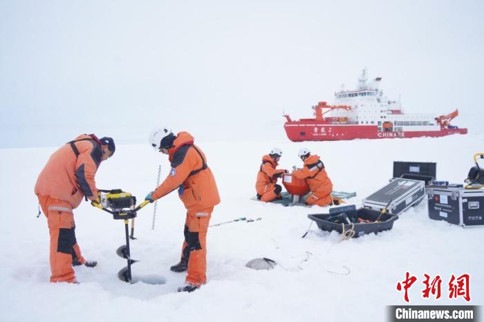 近日,中國第13次北冰洋科學考察隊在北極點附近開展海冰綜合作業。(自然資源部供圖)