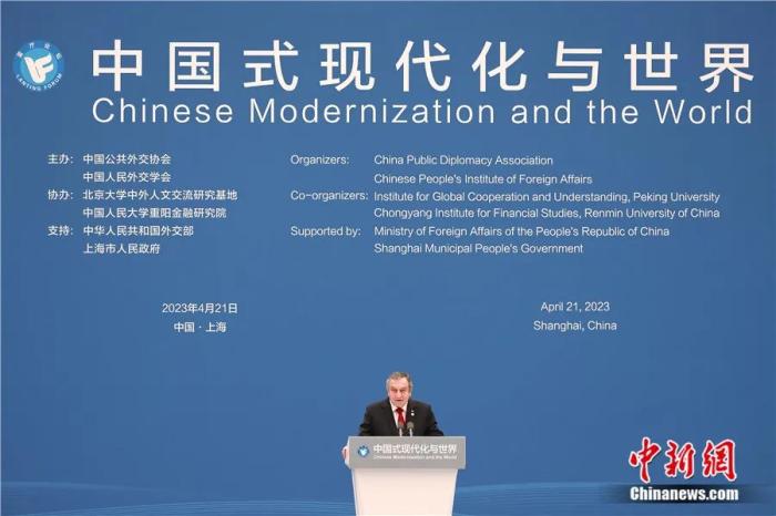 2023年4月21日,“中國(guó)式現(xiàn)代化與世界”藍(lán)廳論壇在上海“世界會(huì)客廳”舉辦,沙拉夫出席論壇開幕式并致辭。殷立勤 攝