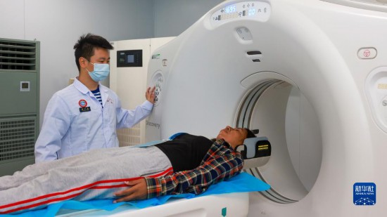 中國海軍“和平方舟”號醫院船訪問東帝汶并開展醫療服務期間,醫院船醫護人員為當地民眾進行CT檢查(9月6日攝)。新華社發(陳云飛 攝)