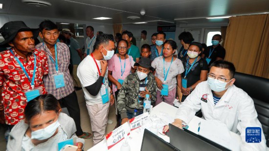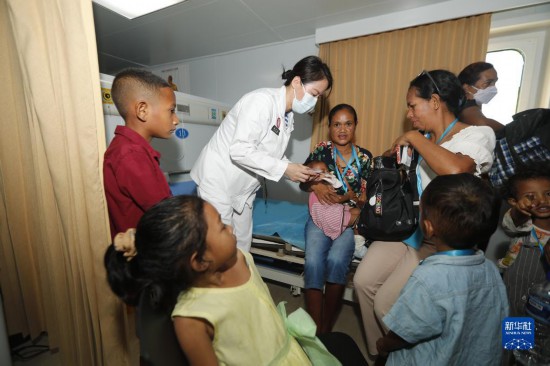 中國海軍“和平方舟”號醫院船訪問東帝汶并開展醫療服務期間,醫院船醫護人員為當地民眾提供醫療服務(9月8日攝)。新華社發(黎宇 攝)