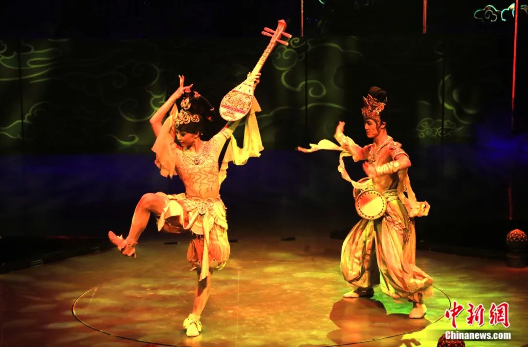 2023年7月,演員在大型洞窟式沉浸體驗(yàn)劇《樂(lè)動(dòng)敦煌》中表演。張曉亮 攝