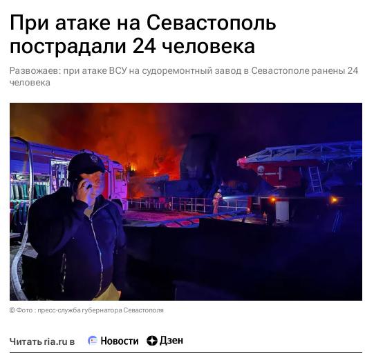 報道稱,13日,塞瓦斯托波爾市市長米哈伊爾·拉茲沃扎耶夫在社交媒體發文稱,烏克蘭此次襲擊造成當地一處非民用設施發生火災,“民用設施沒有危險”。他表示,據初步消息,襲擊造成24人受傷,其中4人傷勢較嚴重。