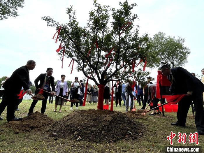 9月13日,第五屆海峽兩岸姊妹湖產業協作年會在武漢啟幕,8個湖泊代表共植“姊妹樹”。 中新社記者 馬芙蓉 攝