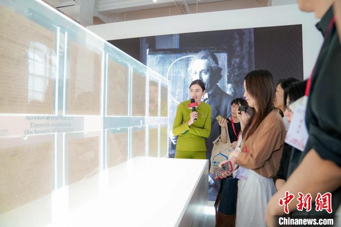 中新網上海9月19日電 (記者 陳靜) 科學家阿爾伯特·愛因斯坦的親筆簽名手稿19日亮相上海。數十件中外名家精品力作同期展出。