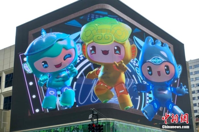 資料圖:4月1日,亞運吉祥物裸眼3D宣傳片在杭州市西湖區文三數字生活街區開播。中新社記者 錢晨菲 攝