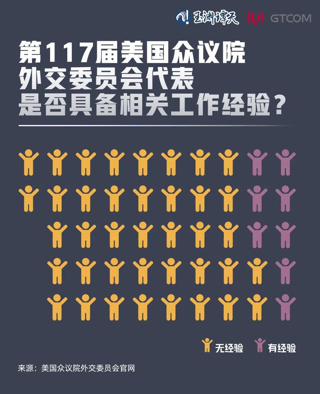 拿最典型的眾議院外交委員會來說,譚主調查了上一屆眾議院外交委員會成員的履歷背景,47名成員中,有外交經歷人只有17%。