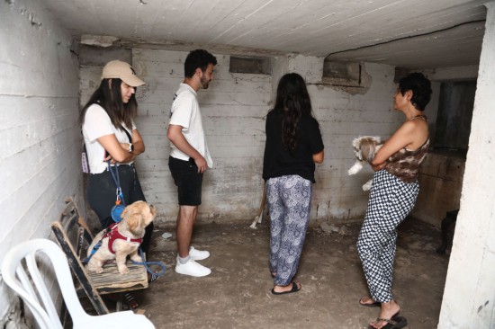 ↑10月7日,防空警報響起后民眾在以色列特拉維夫一處建筑內(nèi)躲避。新華社發(fā)(吉德翁·馬科維奇攝/基尼圖片社)