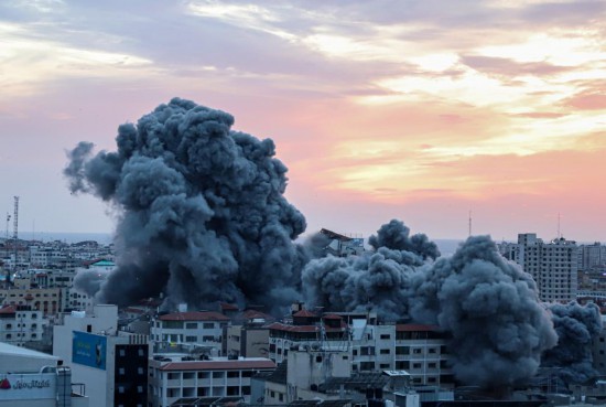 這是10月7日在加沙城拍攝的以色列軍隊空襲后濃煙滾滾的場面。(新華社發,里澤克·阿卜杜勒賈瓦德攝)
