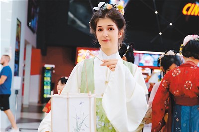 一名學(xué)生展示漢服。