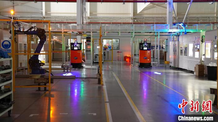 中新社記者近日探訪位于浙江嘉興的敏實集團,在其未來工廠里,機器人于“熄燈車間”來回穿梭。 中新社記者 楊程晨 攝