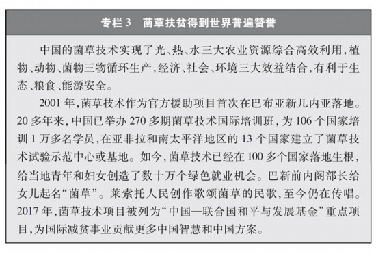 增強共建國家減貧能力。發展中國家仍面臨糧食問題。中國積極參與全球糧農治理,與相關國家發布《共同推進“一帶一路”建設農業合作的愿景與行動》,與近90個共建國家和國際組織簽署了100余份農漁業合作文件,與共建國家農產品貿易額達1394億美元,向70多個國家和地區派出2000多名農業專家和技術人員,向多個國家推廣示范菌草、雜交水稻等1500多項農業技術,幫助亞洲、非洲、南太平洋、拉美和加勒比等地區推進鄉村減貧,促進共建國家現代農業發展和農民增收。促進就業是減貧的重要途徑。在共建“一帶一路”過程中,中國與相關國家積極推進產業園區建設,引導企業通過開展高水平產業合作為當地居民創造就業崗位,實現了“一人就業,全家脫貧”。麥肯錫公司的研究報告顯示,中國企業在非洲雇員本地化率達89%,有效帶動了本地人口就業。世界銀行預測,到2030年,共建“一帶一路”相關投資有望使共建國家760萬人擺脫極端貧困、3200萬人擺脫中度貧困。