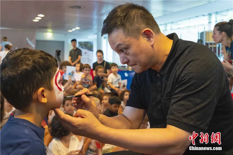 2023年9月赴法演出期間,昆曲走進當(dāng)?shù)氐牟┪镳^、大學(xué)校園以及中國文化中心的工作坊。圖為柯軍帶領(lǐng)當(dāng)?shù)貙W(xué)生體驗昆曲扮相。柯軍 供圖